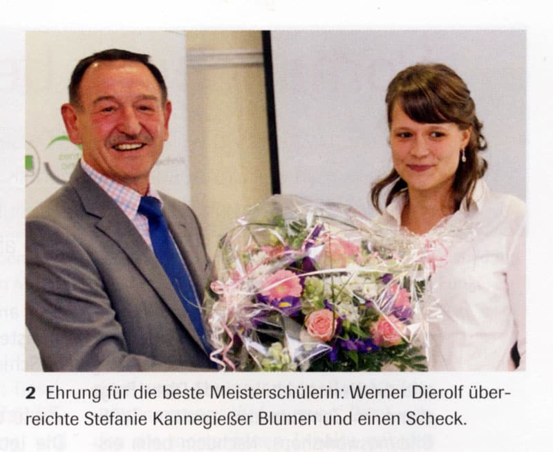 Ehrung für die beste Meisterschülerin: Werner Dierolf überreichte Stefanie Kannegießer Blumen und einen Scheck.